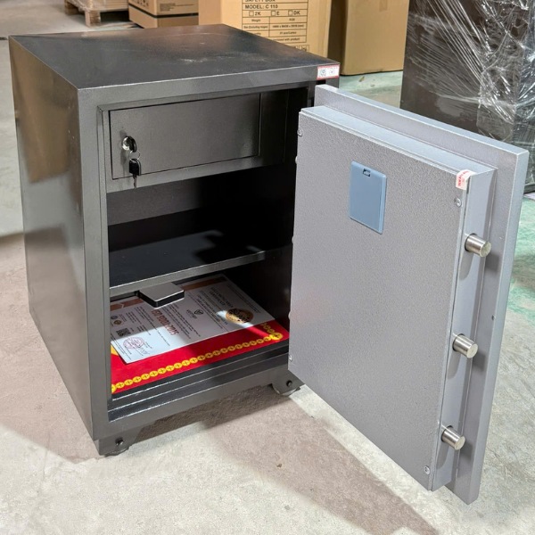 - Bảo mật 2 cấp khóa chìa kết hợp với khóa vân tay mới mở được két sắt