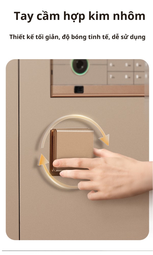 Tay cầm mở két không phải là nhựa rẻ tiền mà là hợp kim nhôm nguyên khối, được gia công CNC chính xác. Thiết kế ergonomic giúp bạn mở két dễ dàng chỉ với một tay.
