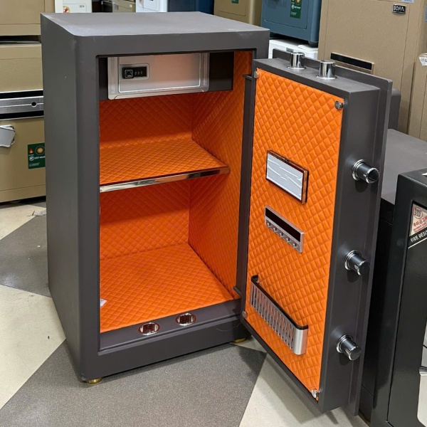 - Cấu tạo: Két sắt đúc nguyên khối sơn tĩnh điện 3 lớp gồm một lớp foam chống cháy 2 thành phần xuất xứ nhật bản