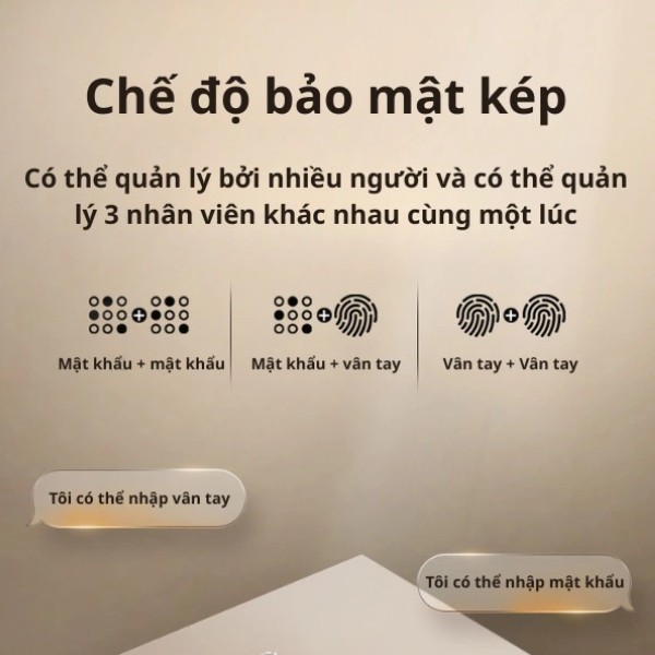 - Công nghệ mở kép hiện đại: mã số + mã số, mã số + vân tay, Vân tay + vân tay